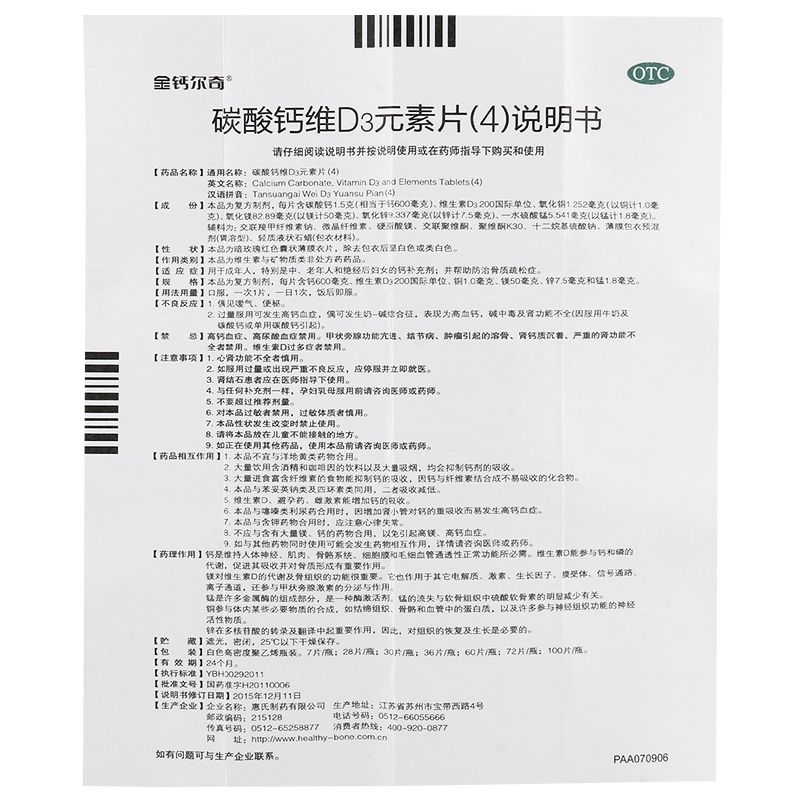碳酸钙维D3元素片