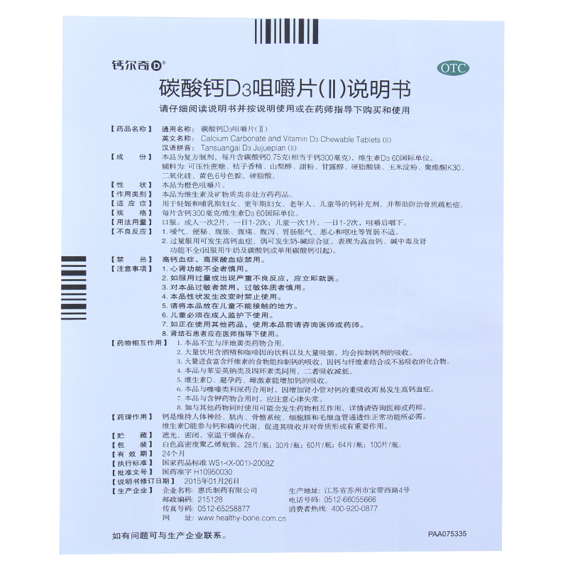 碳酸钙D3咀嚼片