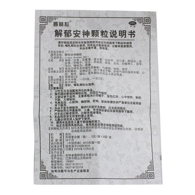 解郁安神颗粒