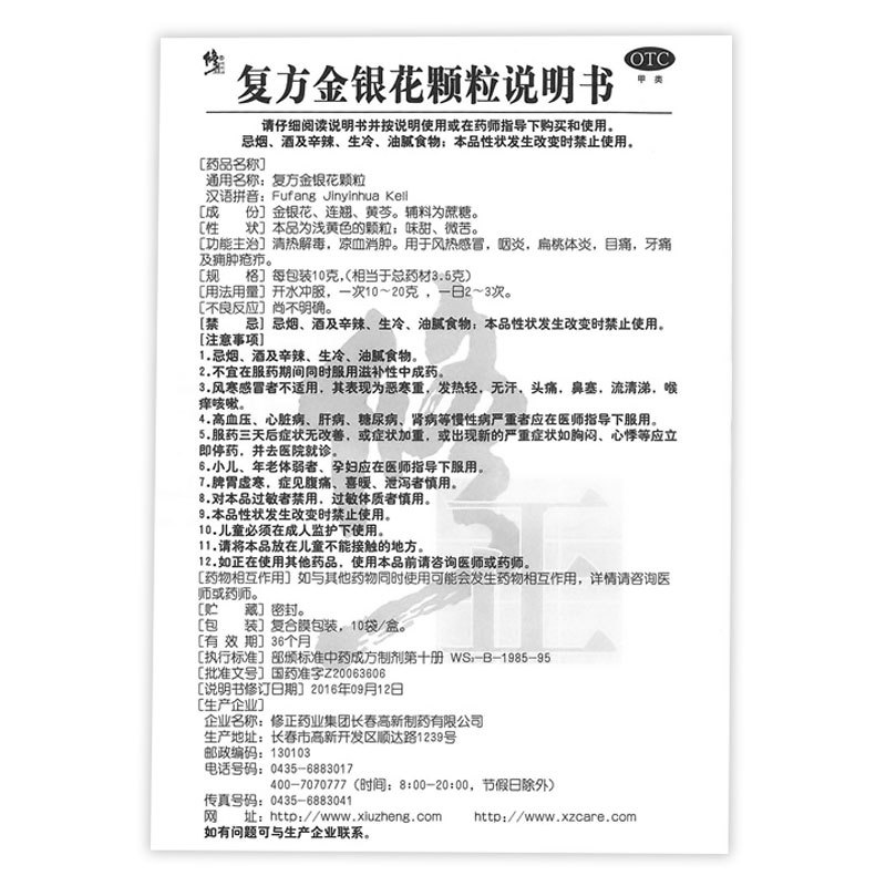 • 商品名称:修正 复方金银花颗粒 10g*10袋