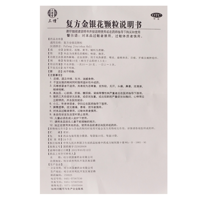 • 商品名称:三懂 复方金银花颗粒 10g*10袋