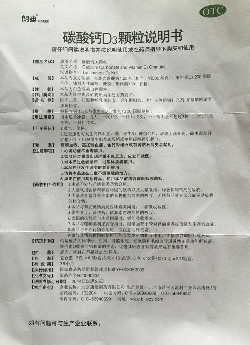 • 商品名称:朗迪 碳酸钙D3颗粒 3g*10袋