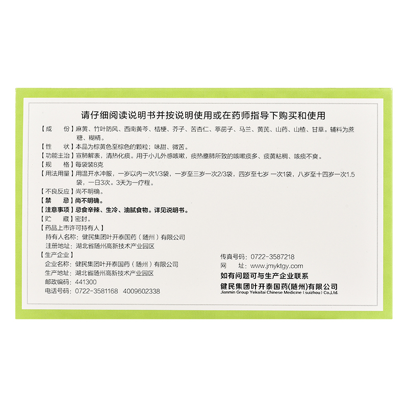 - 生产企业:健民集团叶开泰国药(随州)有限公司(原武汉健民集团随州药业有限公司)