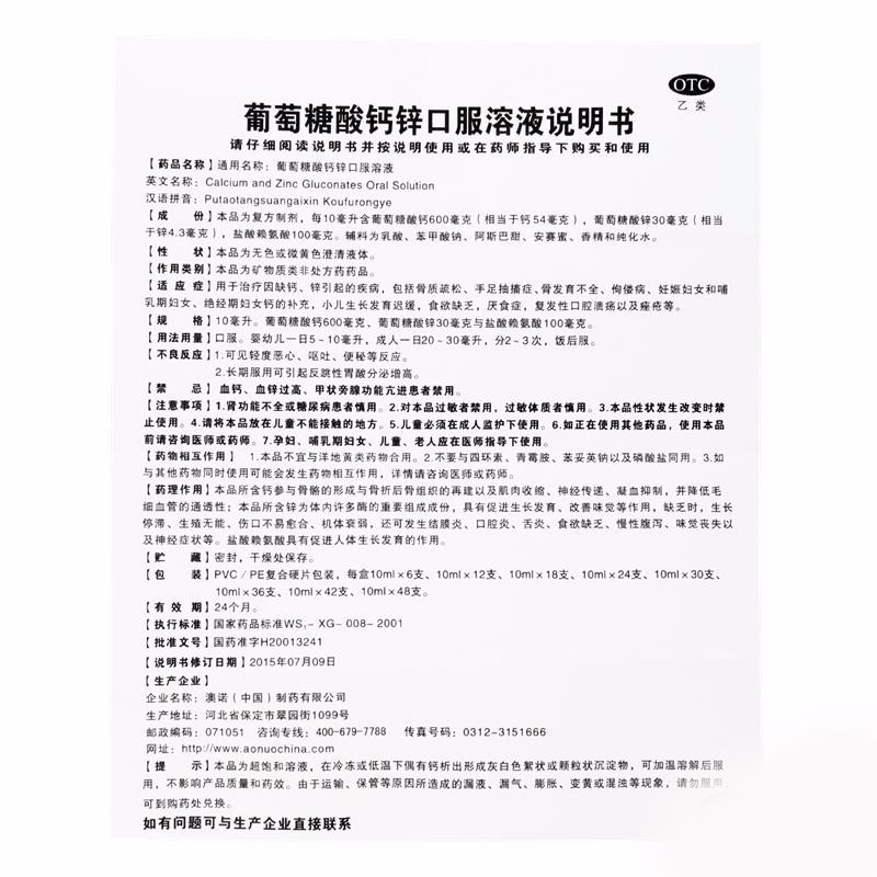• 通用名称:葡萄糖酸钙锌口服溶液
