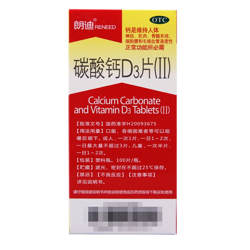 - 商品名称:朗迪 碳酸钙D3片(Ⅱ) 0.5g:5μg(200iu)*100T