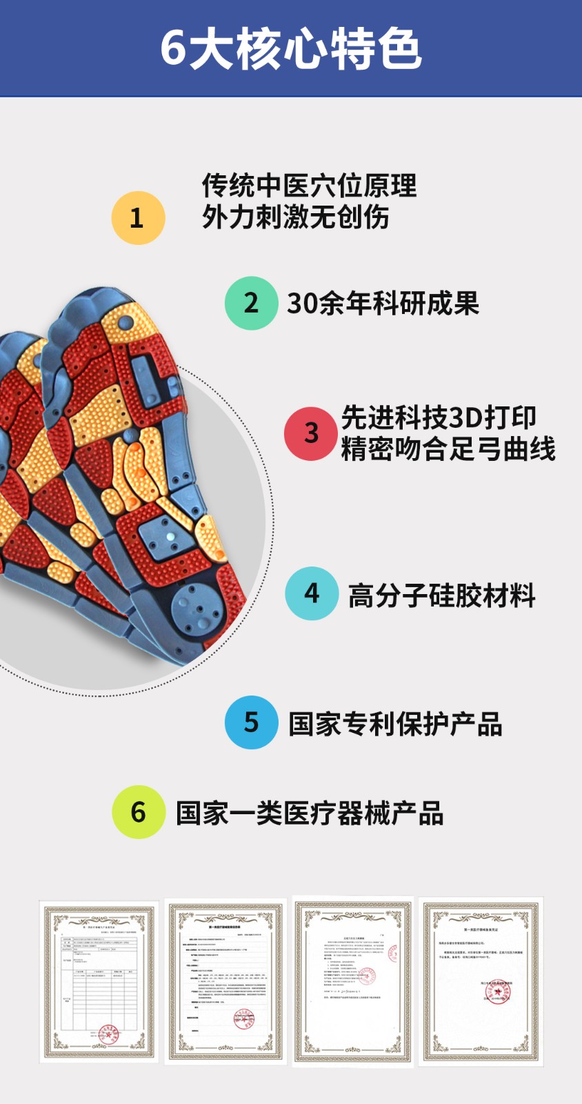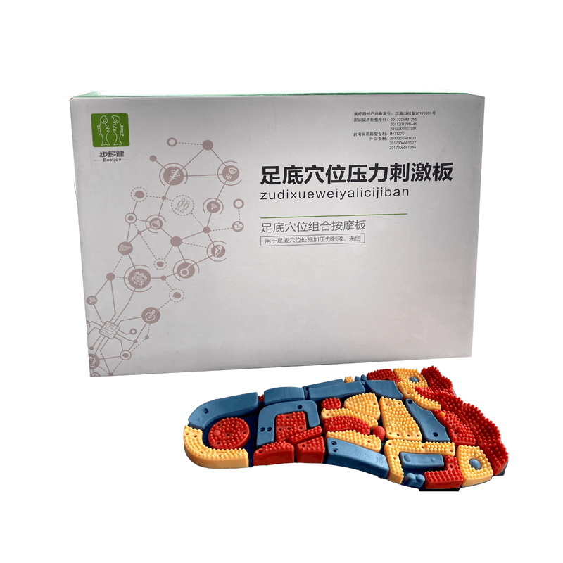 - 适应症/功能主治:根据中医穴位疗法,按不同病症选取球状足反射区穴位点、球状足针穴位点和补位块组成对症的足底穴位压力刺激板,刺激足底穴位