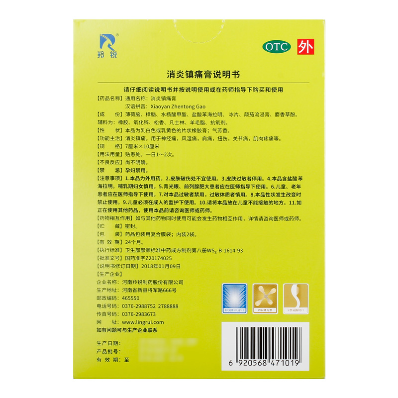 - 商品名称:羚锐 消炎镇痛膏 7cm*10cm*8贴/盒