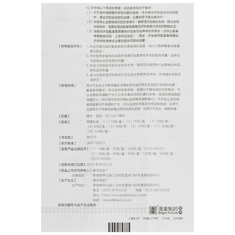 - 通用名称:盐酸氨基葡萄糖胶囊