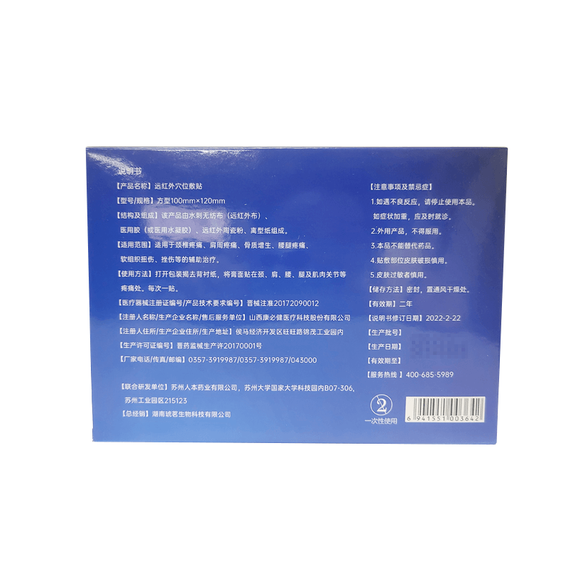 - 通用名称:远红外穴位敷贴