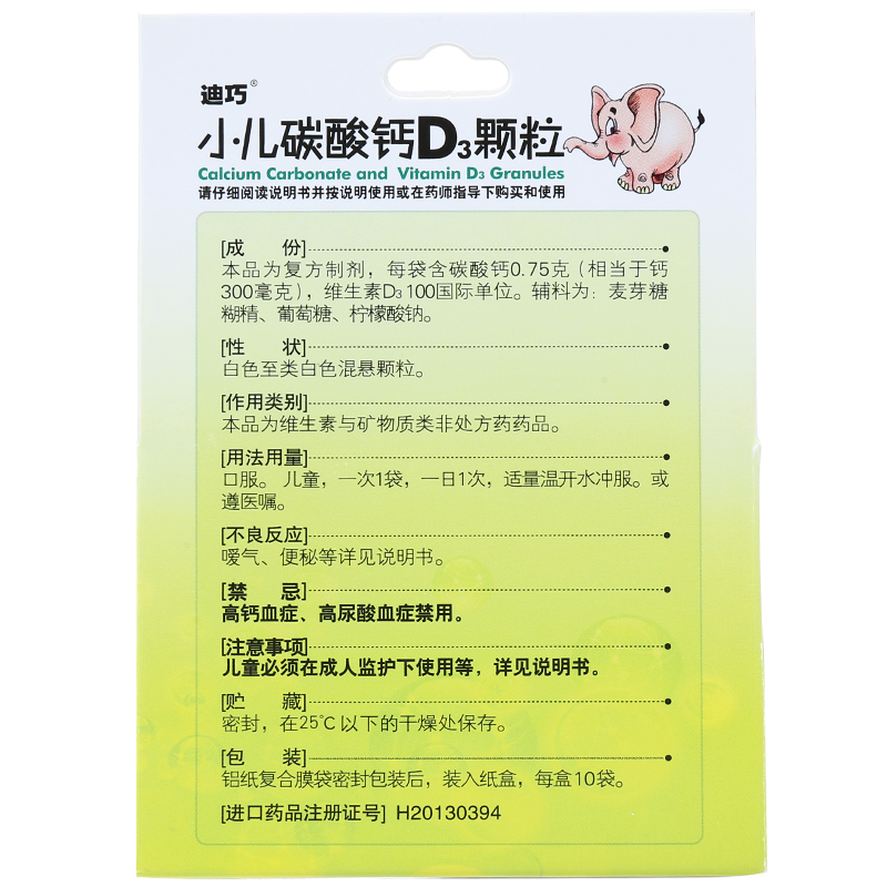 - 商品名称:迪巧 小儿碳酸钙D3颗粒 1g*10袋/盒