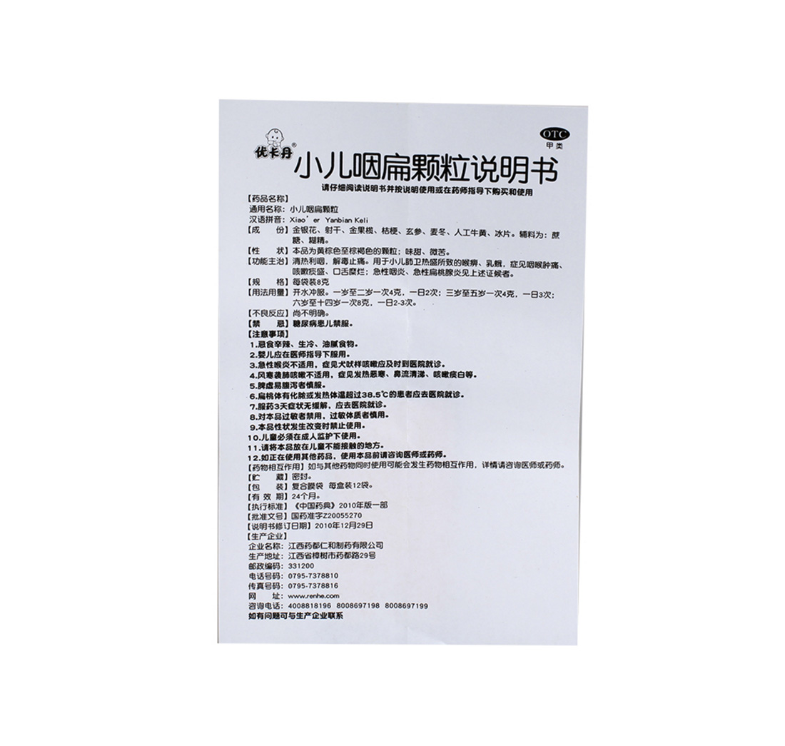 - 商品名称:优卡丹 小儿咽扁颗粒 8g*12袋/盒