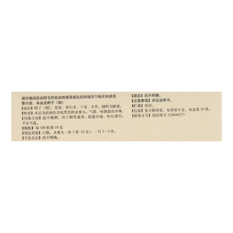- 适应症/功能主治:温中健脾。用于脾胃虚寒,脘腹冷痛,呕吐泄泻,手足不温。