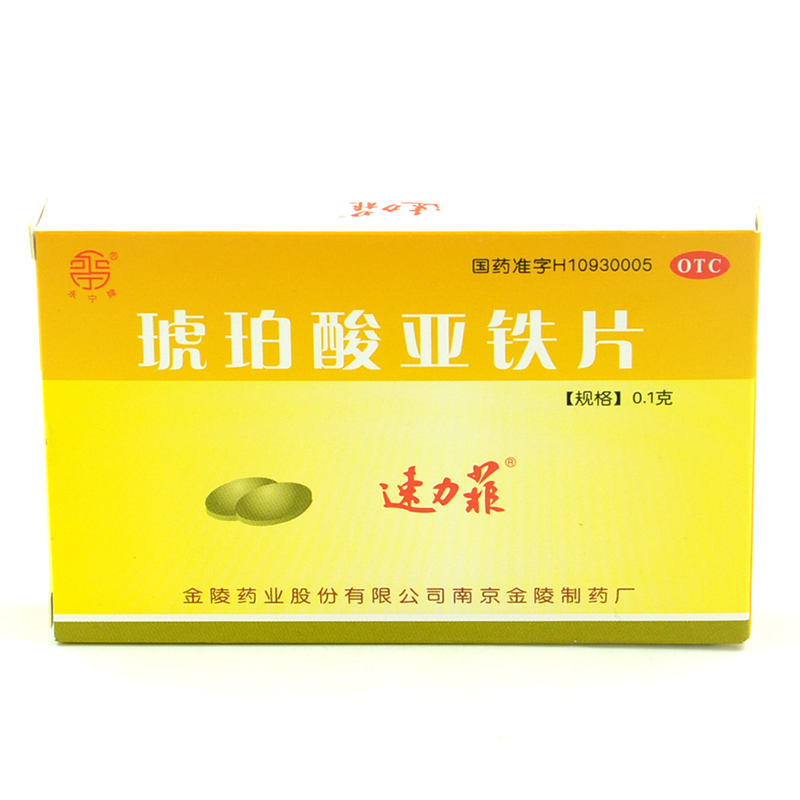 - 商品名称:速力菲 琥珀酸亚铁片 0.1g*20片/盒