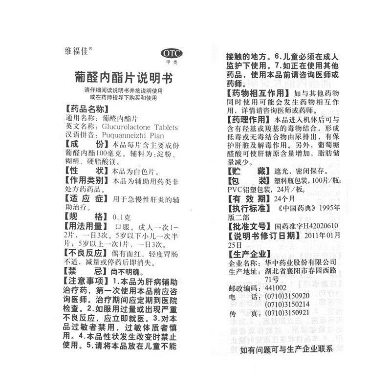 - 商品名称:维福佳 葡醛内酯片 0.1g*100片/瓶