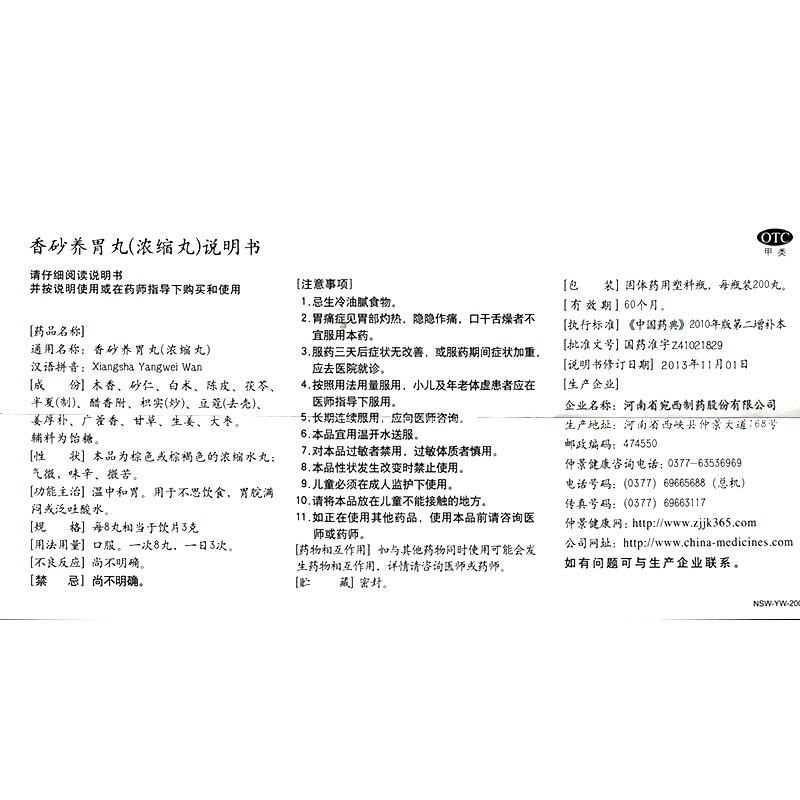 - 商品名称:仲景 香砂养胃丸 200丸/瓶