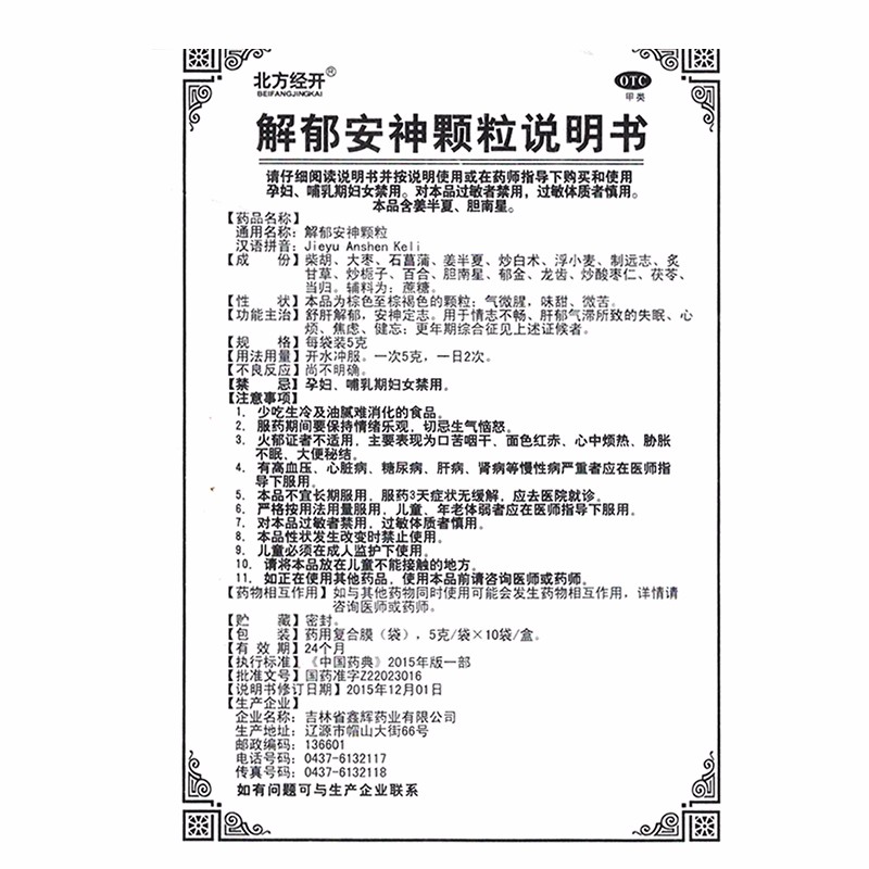 - 商品名称:北方经开 解郁安神颗粒 10袋/盒